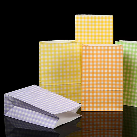 Sac de cuisson en papier Kraft classique mignon Ins couleur Plaid matériel fond carré pour stocker les nouilles au sucre autres aliments classiques